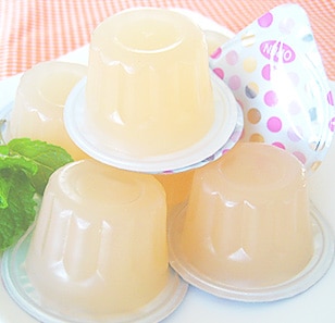 寒天を入れた、食感の軽いもも味のゼリーです。
