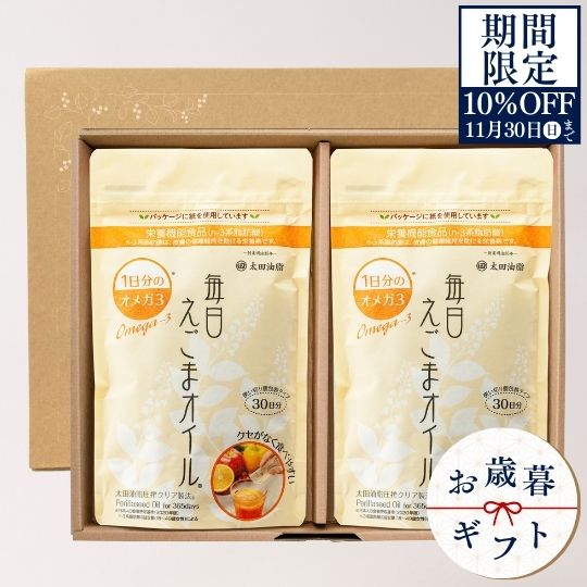 携帯に便利で、酸化しにくい個包装タイプの商品が2袋、約2ヶ月分のえごまオイルギフトです。 スープやお味噌汁、野菜ジュースに入れたり、できた料理にそのままかけてご使用いただくのがおすすめです。