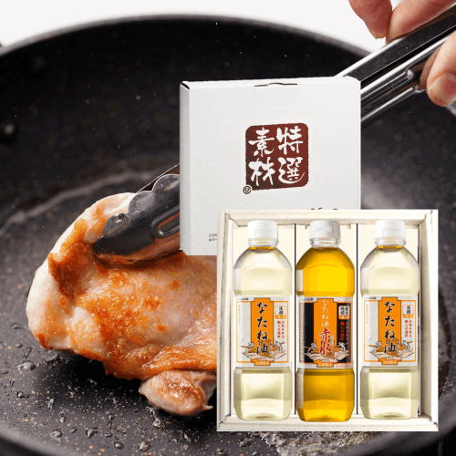 | ギフトセット内容 | なたね油 600g×2本 なたね油赤水 600g×1本 ※レシピ付き |