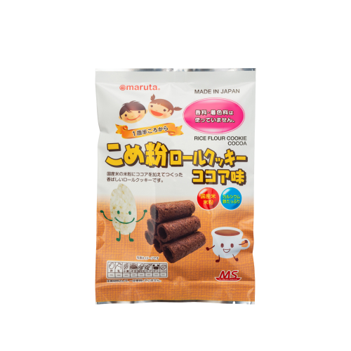 国産の米粉にココアを加えてつくった香ばしいロールクッキーです。