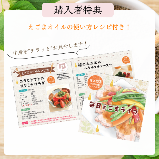 | ギフトセット内容 | 血圧が高めの方のえごまオイル 180g×3本 ※レシピ付き |