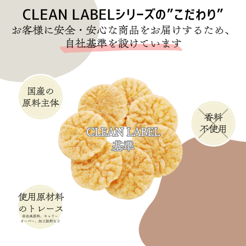国産原料を使って、日本の農業を応援します。CLEAN LABEL(クリーンラベル)とは「出どころが明確な原材料を使用しましょう」という、欧米を中心とした、食のトレンドを言います。原材料をよりシンプルに、よりナチュラルなものを選びました。