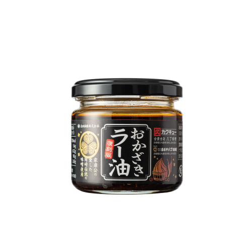| 使用原材料 | 食用植物油脂(なたね油(国内製造))、フライドガーリック、豆みそ(大豆を含む)、唐辛子粉末、砂糖、食塩、花椒、清酒 |