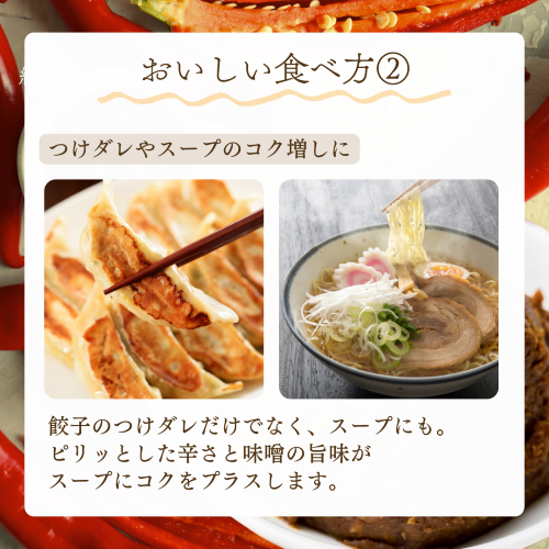 3.香料・着色料不使用 濃厚なコクと食欲がそそる風味が特徴の「おかざきラー油」をぜひお楽しみください。