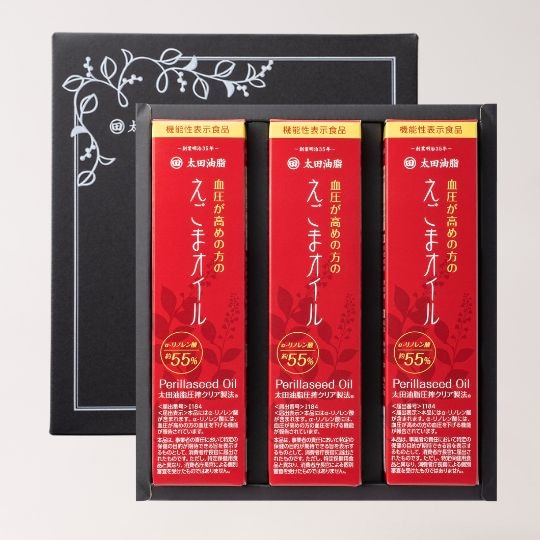 | ギフトセット内容 | 血圧が高めの方のえごまオイル 180g×3本 ※レシピ付き |
